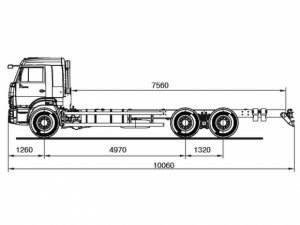 Шасси 6*4, длина рамы 5 970 мм, межосевое растояние мм, грузоподъемность 12 тонн